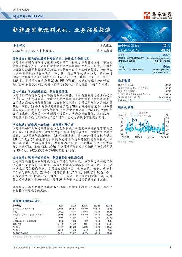【华泰证券】【20231102】国能日新-301162.SZ-新能源发电预测龙头,业务拓展提速-32页