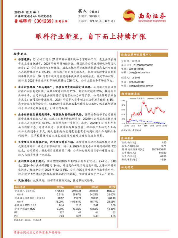 【西南证券】【20231204】普瑞眼科-301239.SZ-眼科行业新星,自下而上持续扩张-29页
