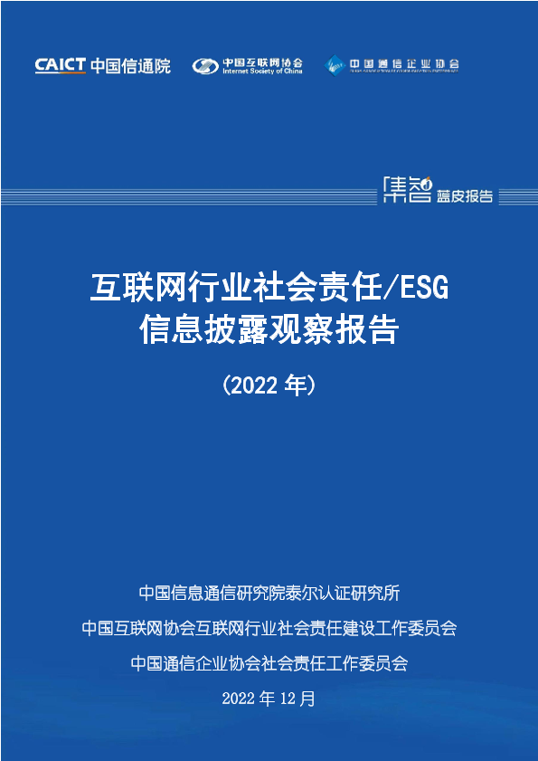 【中国信息通信研究院】【202212】互联网行业社会责任ESG信息披露观察报告(2022年)-60页