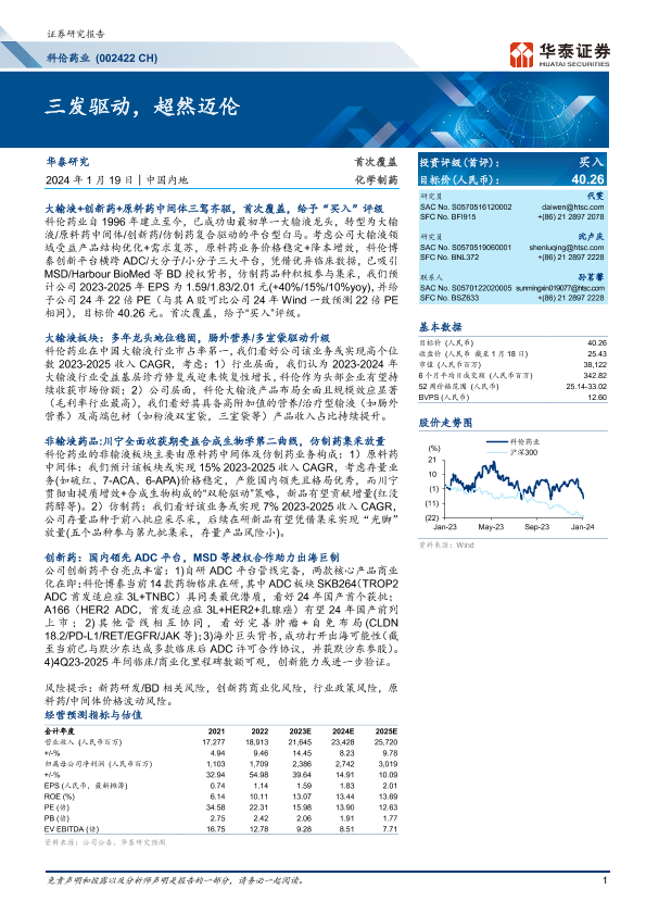 【华泰证券】【20240119】科伦药业-三发驱动,超然迈伦-65页