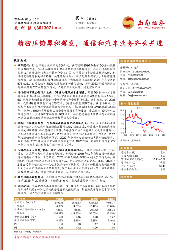 【西南证券】【20240813】精密压铸厚积薄发,通信和汽车业务齐头并进-38页