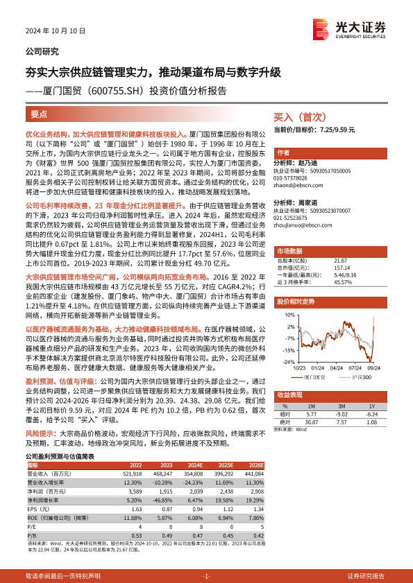 【光大证券】【20241010】夯实大宗供应链管理实力,推动渠道布局与数字升级——厦门国贸(600755.SH)投资价值分析报告-33页