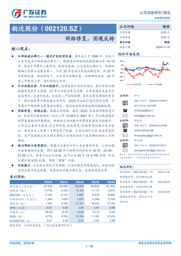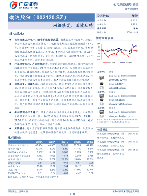 【广发证券】【20241119】韵达股份(002120.SZ):网络修复,困境反转-38页