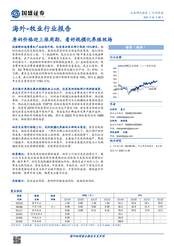 【国盛证券】【20210108】20210108-国盛证券-海外-牧业行业报告:原奶价格迎上涨周期,看好规模化养殖牧场-17页