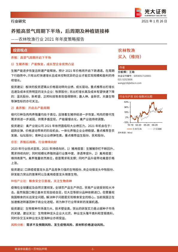 【光大证券】【20210126】农林牧渔行业2021年年度策略报告:养殖高景气周期下半场,后周期及种植链接棒-40页