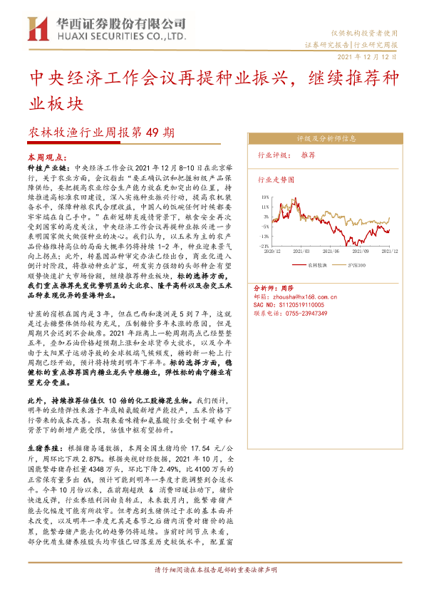 【华西证券】【20211212】20211212-华西证券-农林牧渔行业周报第49期:中央经济工作会议再提种业振兴,继续推荐种业板块-23页