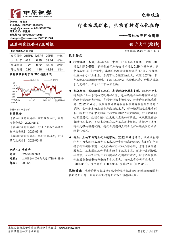 【中原证券】【20220610】农林牧渔行业周报:行业东风到来,生物育种商业化在即-11页