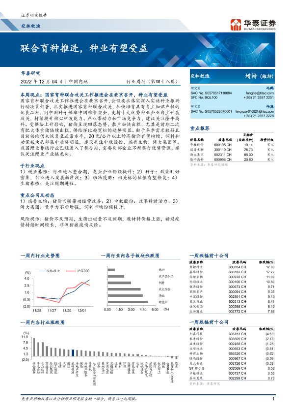 【华泰证券】【20221204】农林牧渔行业周报(第四十八周):联合育种推进,种业有望受益-20页