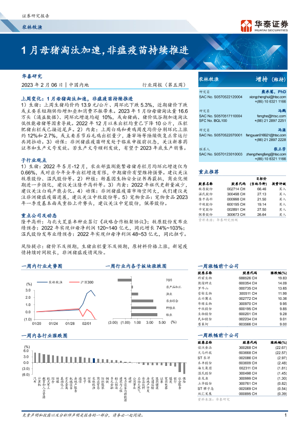 【华泰证券】【20230206】农林牧渔行业周报(第五周):1月母猪淘汰加速,非瘟疫苗持续推进-20页
