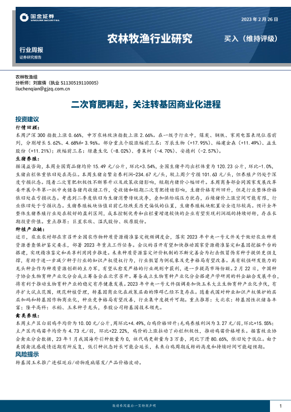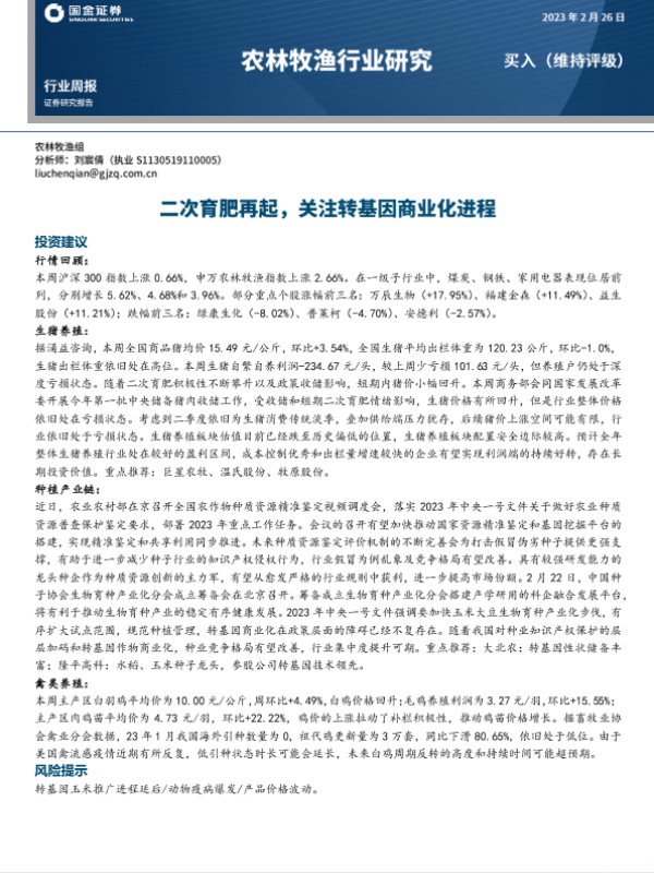 【国金证券】【20230226】20230226-国金证券-农林牧渔行业研究:二次育肥再起,关注转基因商业化进程-15页