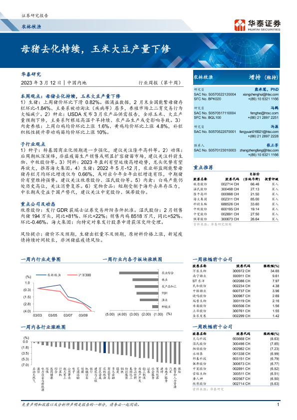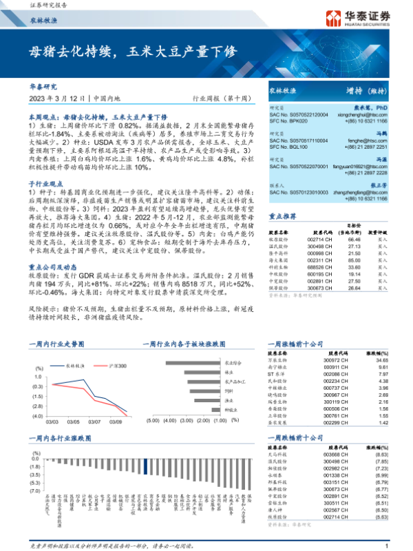 【华泰证券】【20230312】20230312-华泰证券-农林牧渔行业周报(第十周):母猪去化持续,玉米大豆产量下修-23页