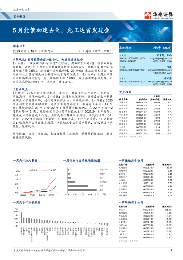 【华泰证券】【20230618】20230618-华泰证券-农林牧渔行业周报(第二十四周):5月能繁加速去化,先正达首发过会-29页