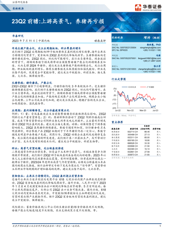 【华泰证券】【20230711】23Q2前瞻:上游高景气,养猪再亏损-23页