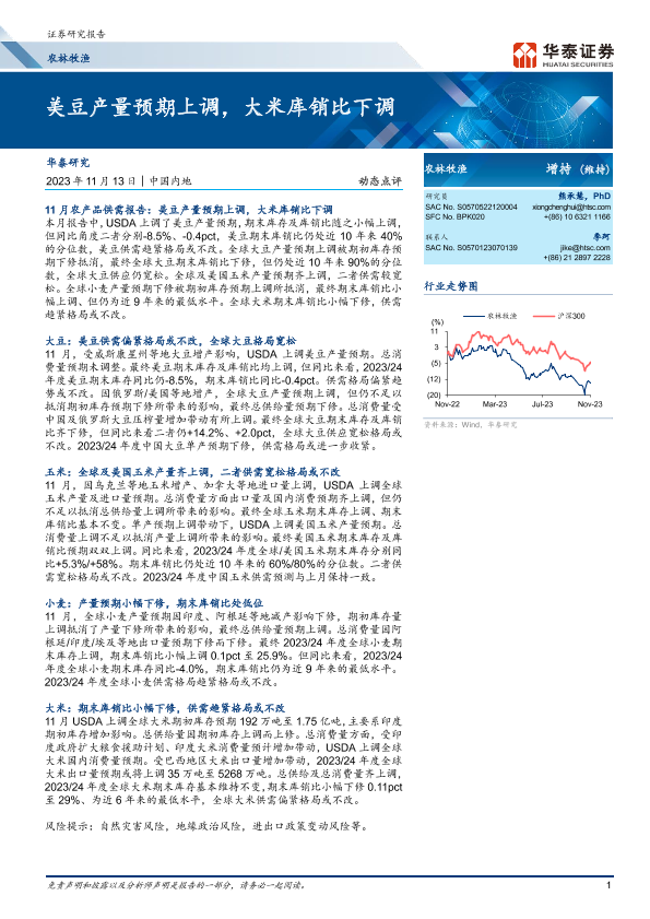 【华泰证券】【20231113】20231113-华泰证券-农林牧渔动态点评:美豆产量预期上调,大米库销比下调-10页