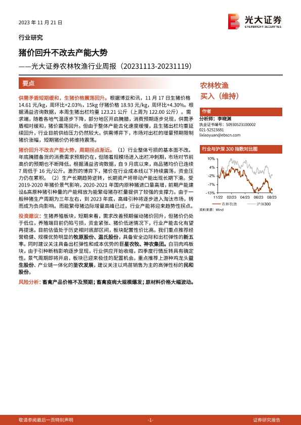 【光大证券】【20231121】农林牧渔行业周报:猪价回升不改去产能大势-14页