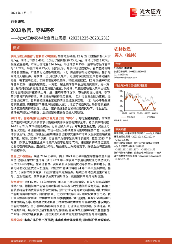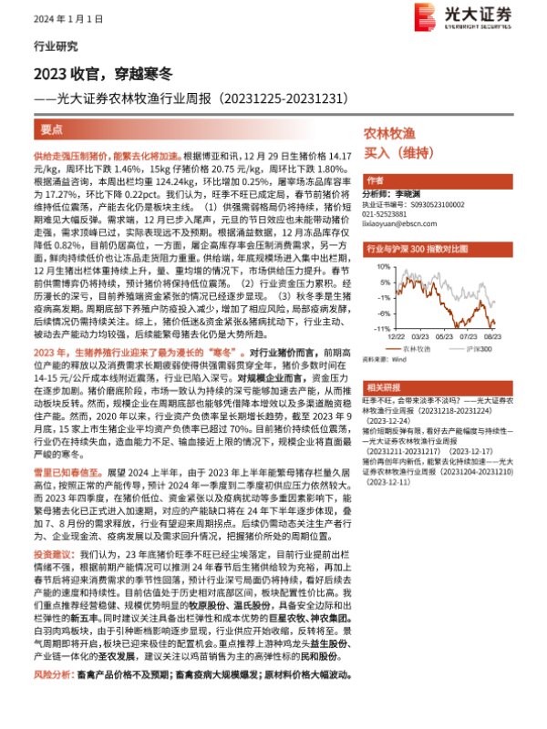【光大证券】【20240101】20240101-光大证券-农林牧渔行业周报:2023收官,穿越寒冬-14页