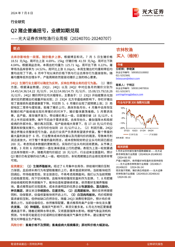 【光大证券】【20240708】20240708-光大证券-农林牧渔行业周报:Q2猪企普遍扭亏,业绩如期兑现-13页