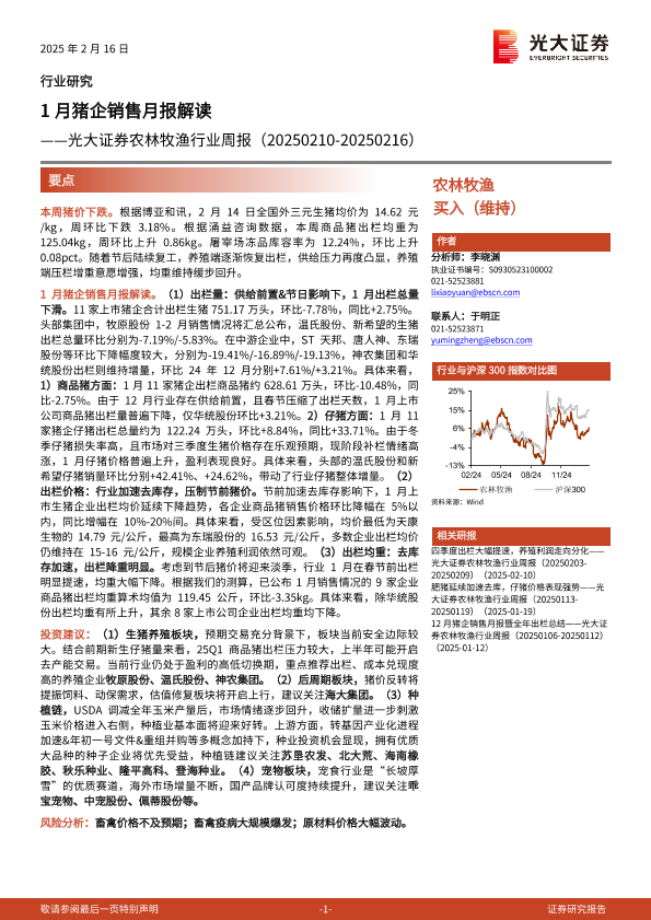 【光大证券】【20250216】20250216-光大证券-农林牧渔行业周报:1月猪企销售月报解读-14页