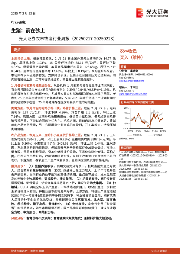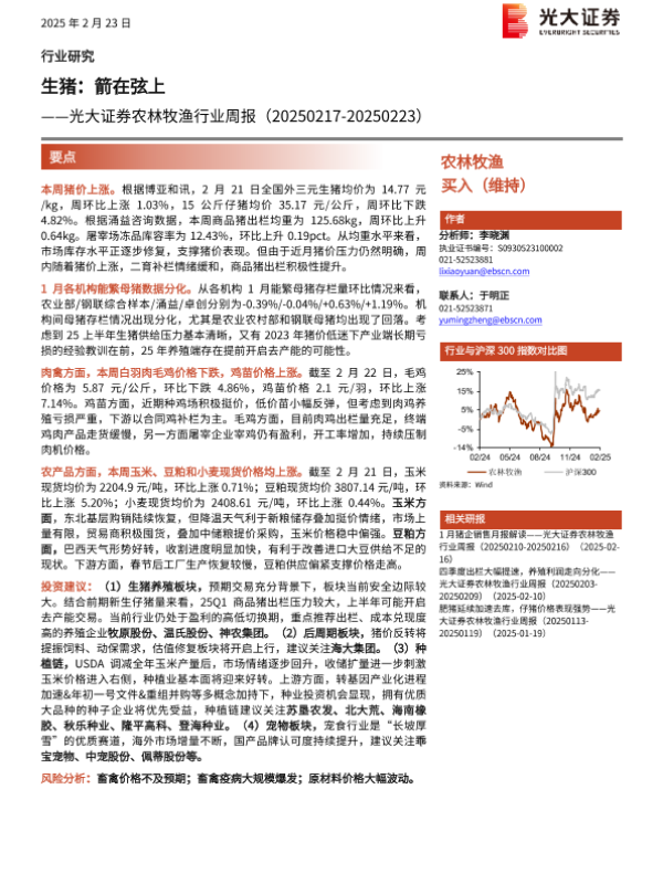 【光大证券】【20250223】20250223-光大证券-农林牧渔行业周报:生猪,箭在弦上-12页