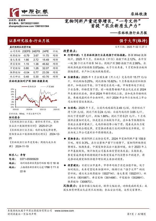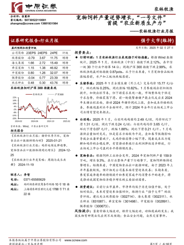 【中原证券】【20250227】农林牧渔行业月报:宠物饲料产量逆势增长,“一号文件”首提“农业新质生产力”-16页