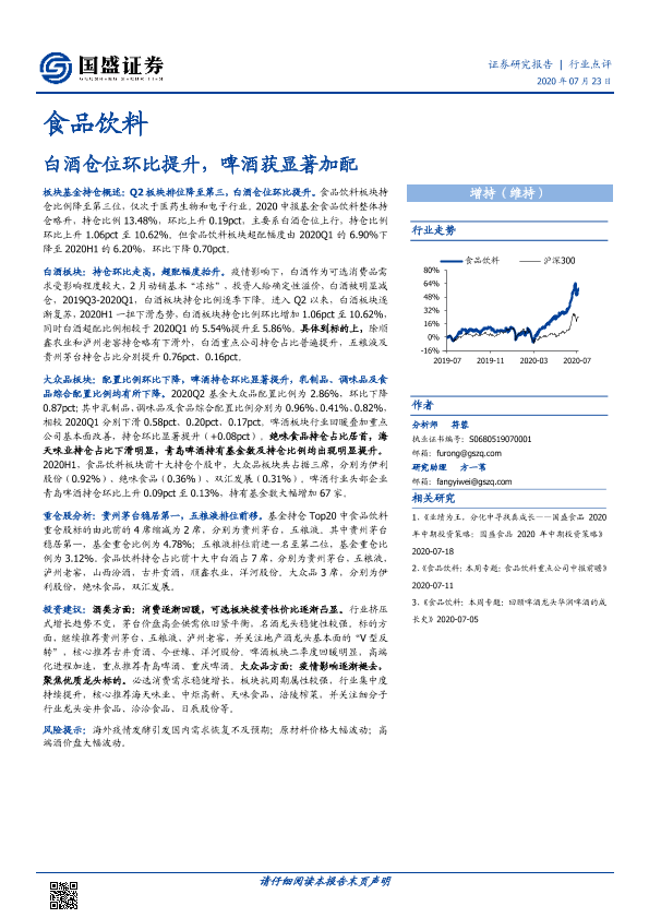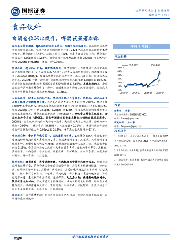 【国盛证券】【20200723】食品饮料:白酒仓位环比提升,啤酒获显著加配-9页