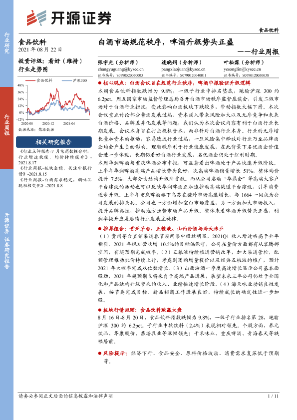 【开源证券】【20210822】食品饮料行业周报:白酒市场规范秩序,啤酒升级势头正盛-11页