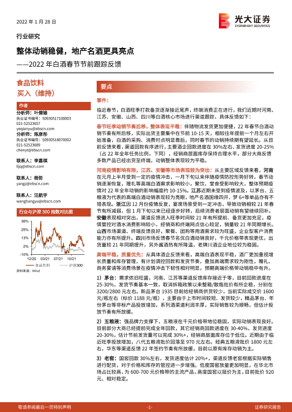 【光大证券】【20220128】2022年白酒春节节前跟踪反馈:整体动销稳健,地产名酒更具亮点-4页