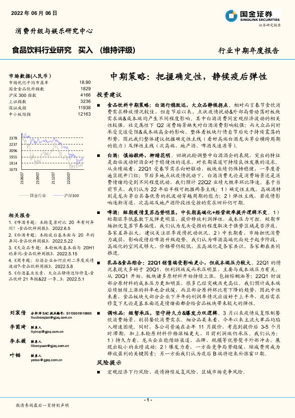 【国金证券】【20220606】20220606-国金证券-食品饮料行业中期策略:把握确定性,静候疫后弹性-31页