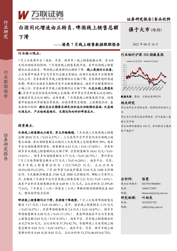 【万联证券】【20220818】食品饮料:酒类7月线上销售数据跟踪报告:白酒同比增速由正转负,啤酒线上销售总额下滑-11页