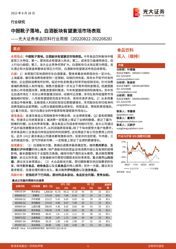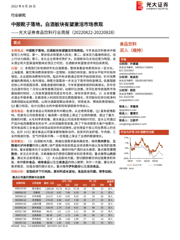 【光大证券】【20220828】20220828-光大证券-食品饮料行业周报:中报靴子落地,白酒板块有望激活市场表现-12页