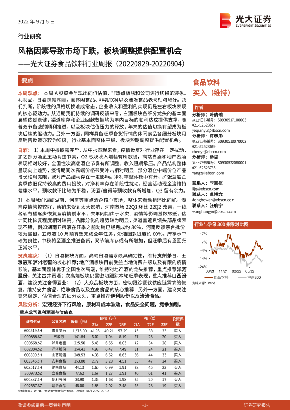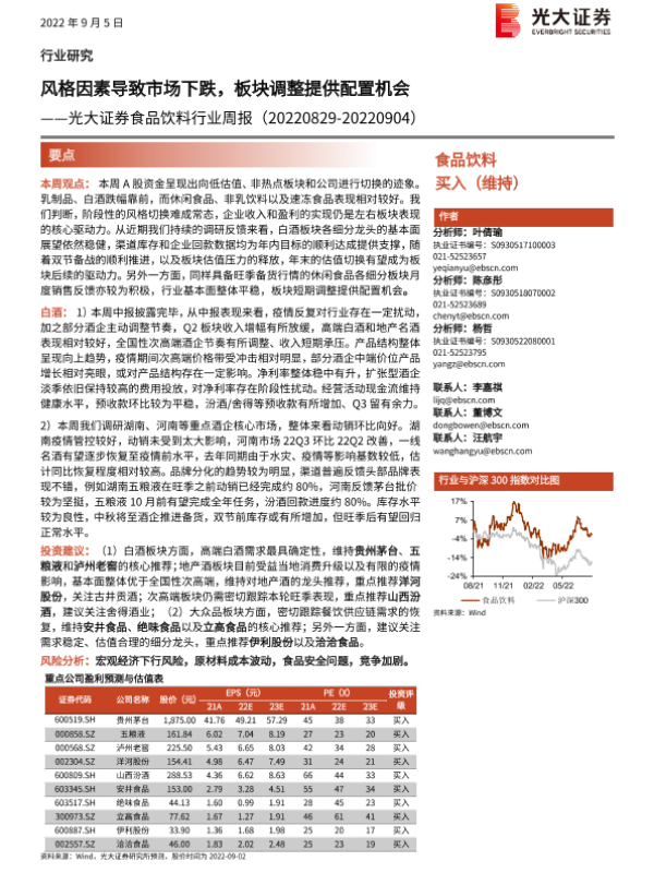 【光大证券】【20220905】20220905-光大证券-食品饮料行业周报:风格因素导致市场下跌,板块调整提供配置机会-11页
