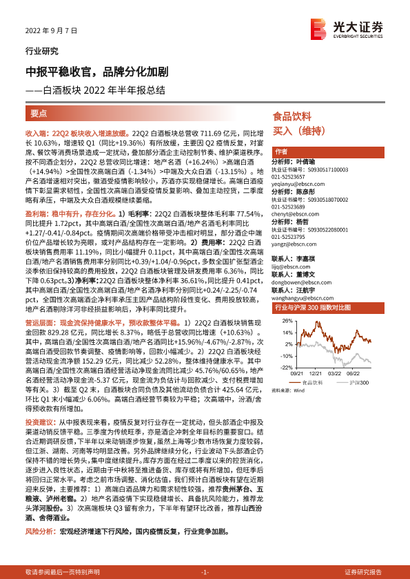【光大证券】【20220907】白酒板块2022年半年报总结:中报平稳收官,品牌分化加剧-15页