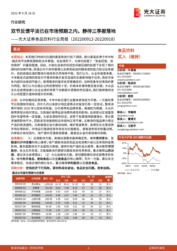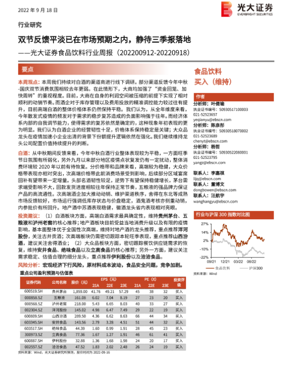【光大证券】【20220918】20220918-光大证券-食品饮料行业周报:双节反馈平淡已在市场预期之内,静待三季报落地-10页