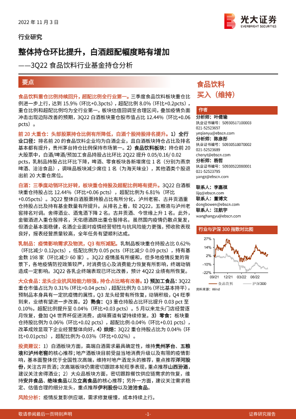 【光大证券】【20221103】3Q22食品饮料行业基金持仓分析:整体持仓环比提升,白酒超配幅度略有增加-13页