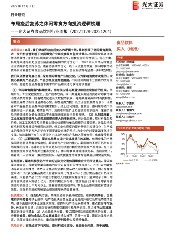【光大证券】【20221205】20221205-光大证券-食品饮料行业周报:布局疫后复苏之休闲零食方向投资逻辑梳理-11页