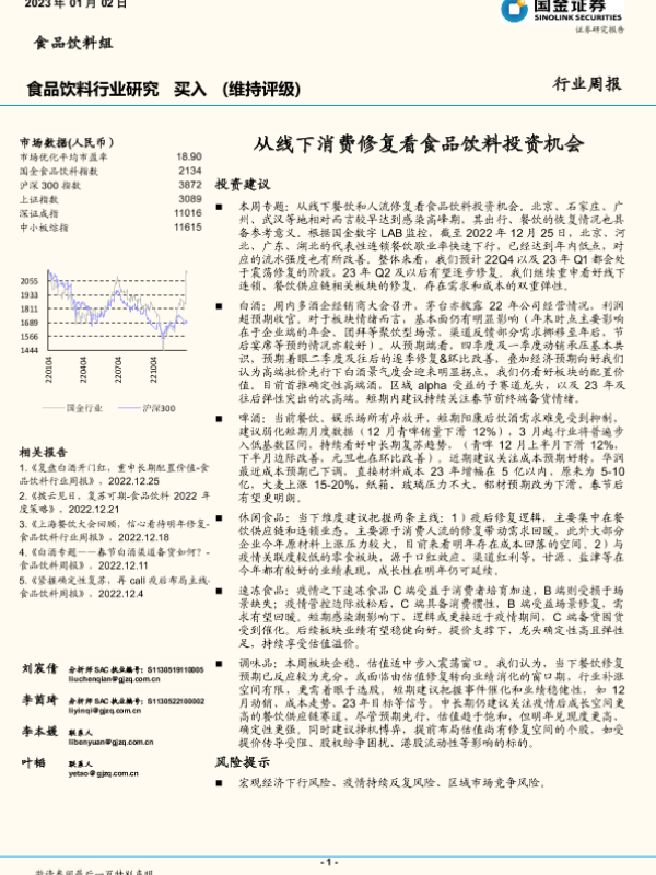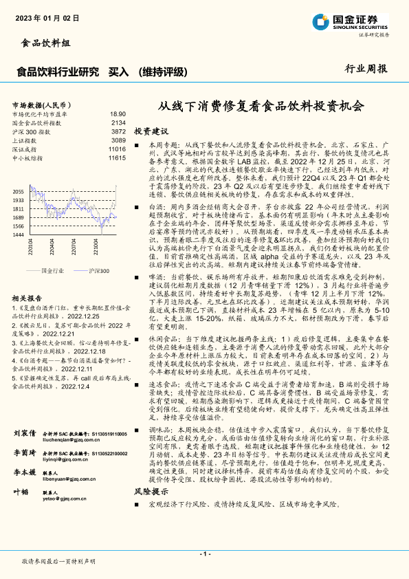 【国金证券】【20230102】20230102-国金证券-食品饮料行业周报:从线下消费修复看食品饮料投资机会-12页