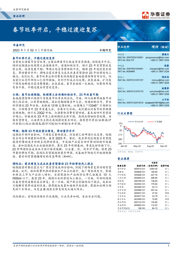 【华泰证券】【20230102】20230102-华泰证券-食品饮料专题研究:春节旺季开启,平稳过渡迎复苏-11页