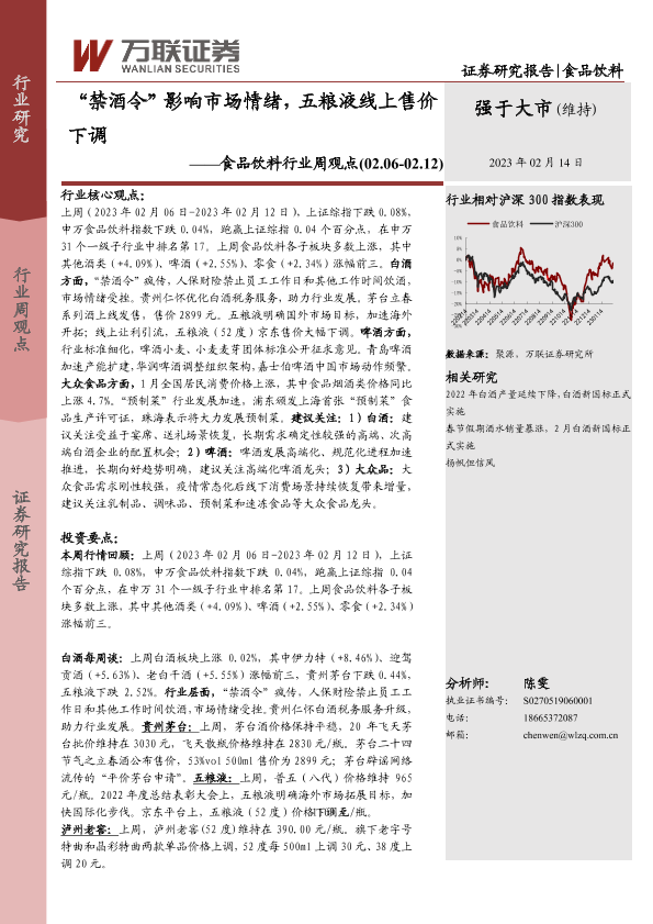 【万联证券】【20230214】20230214-万联证券-食品饮料行业周观点:“禁酒令”影响市场情绪,五粮液线上售价下调-12页