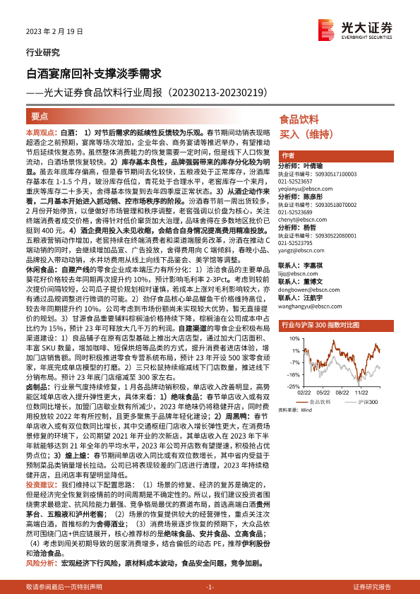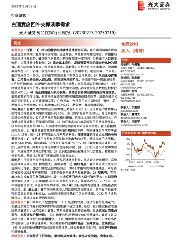 【光大证券】【20230219】食品饮料行业周报:白酒宴席回补支撑淡季需求-11页