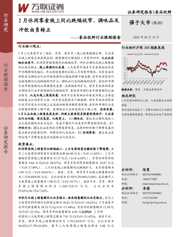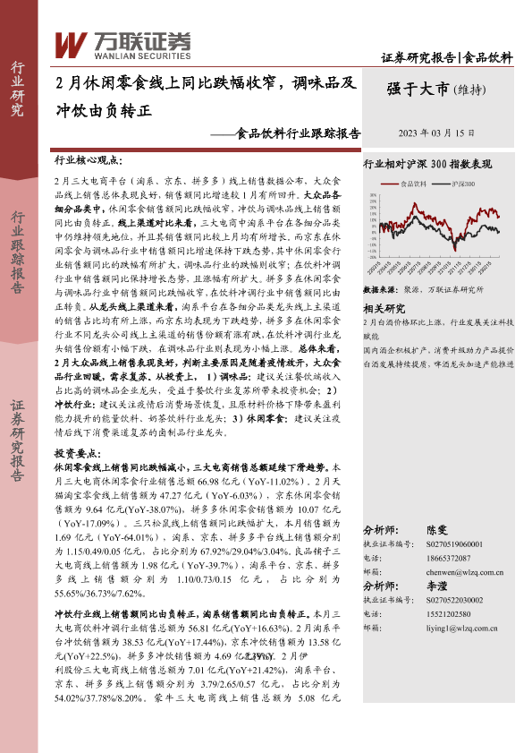 【万联证券】【20230315】2月休闲零食线上同比跌幅收窄,调味品及冲饮由负转正-13页