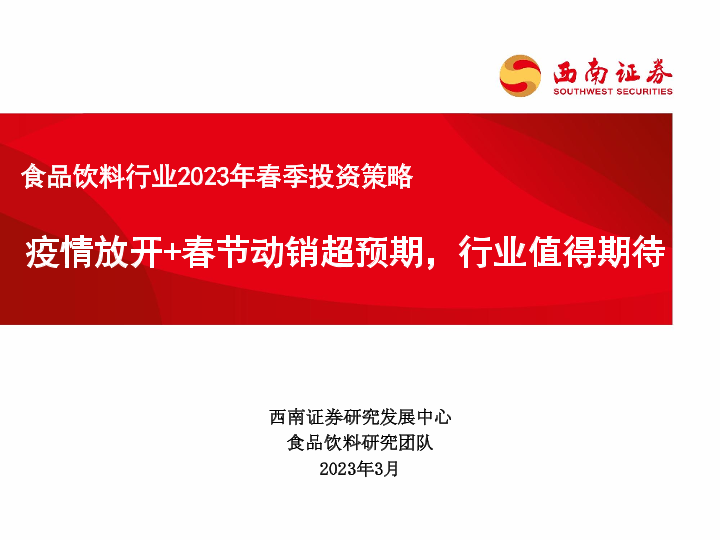 【西南证券】【202303】食品饮料行业2023年春季投资策略:疫情放开+春节动销超预期,行业值得期待-68页