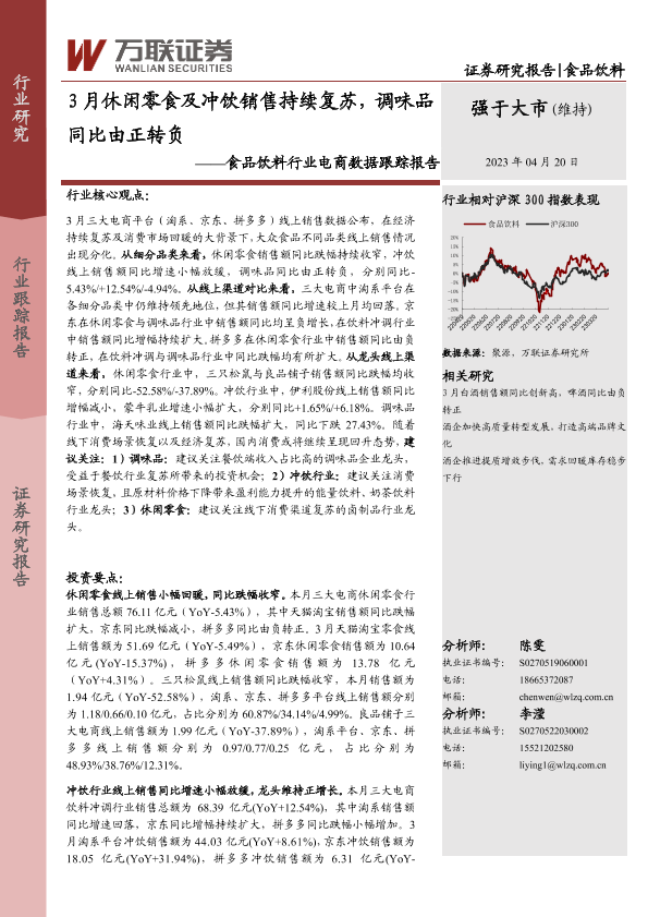 【万联证券】【20230420】3月休闲零食及冲饮销售持续复苏,调味品同比由正转负-13页