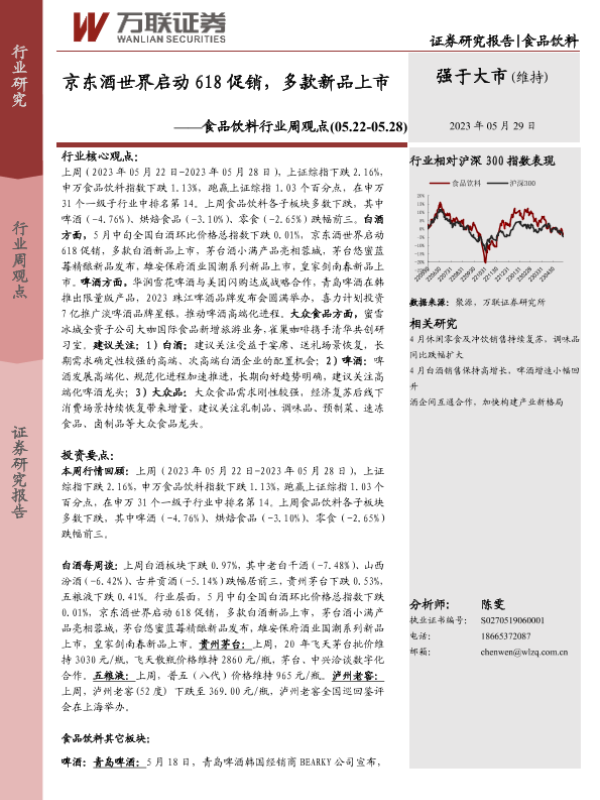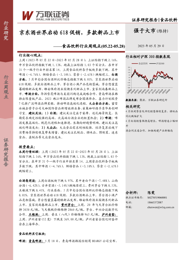【万联证券】【20230529】20230529-万联证券-食品饮料行业周观点:京东酒世界启动618促销,多款新品上市-14页