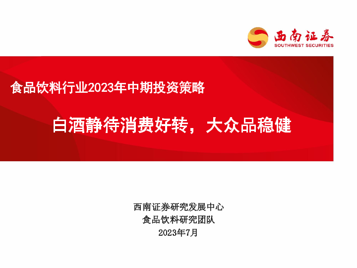 【西南证券】【202307】食品饮料行业2023年中期投资策略:白酒静待消费好转,大众品稳健-75页