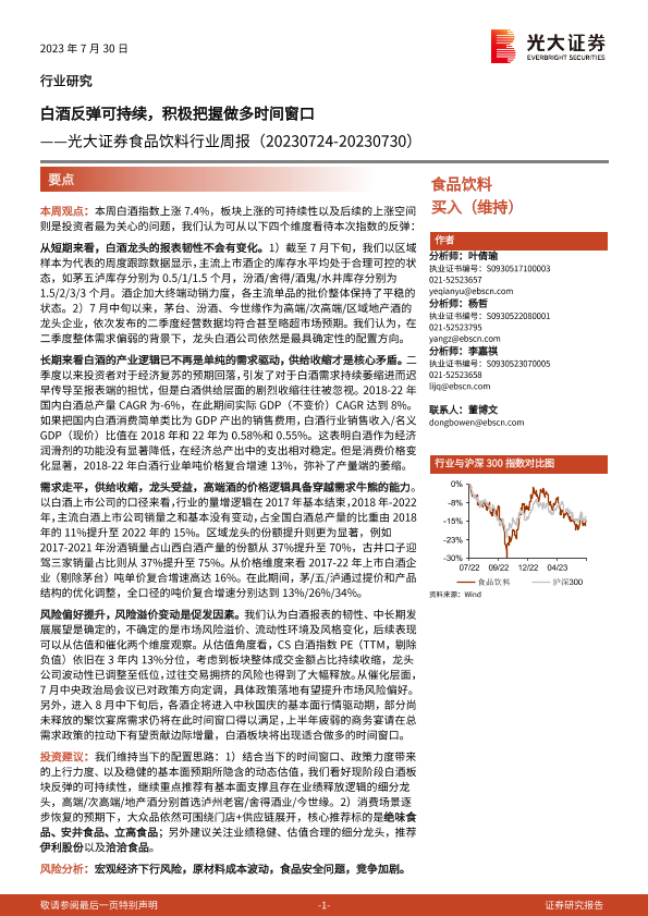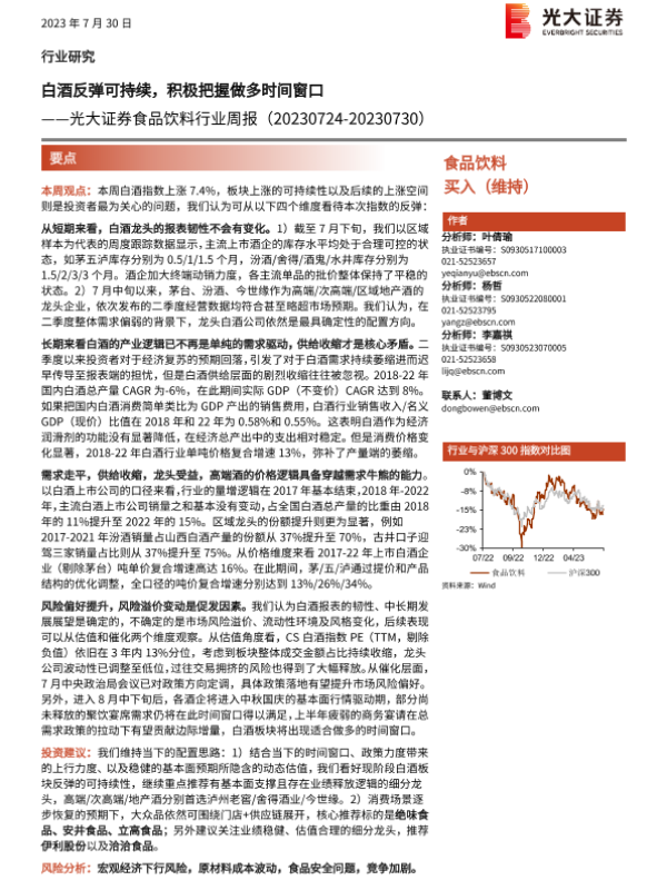 【光大证券】【20230730】食品饮料行业周报:白酒反弹可持续,积极把握做多时间窗口-13页
