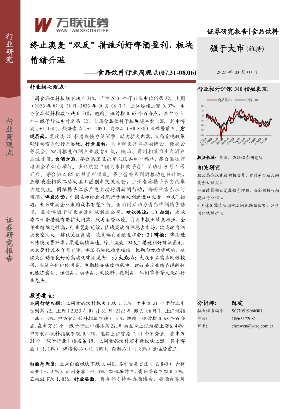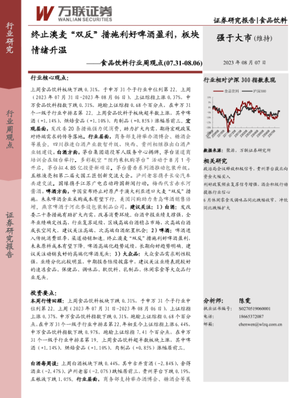 【万联证券】【20230807】20230807-万联证券-食品饮料行业周观点:终止澳麦“双反”措施利好啤酒盈利,板块情绪升温-14页