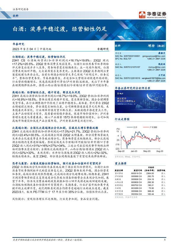 【华泰证券】【20230904】饮料行业专题研究:白酒:淡季平稳过渡,经营韧性仍足-14页