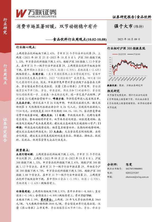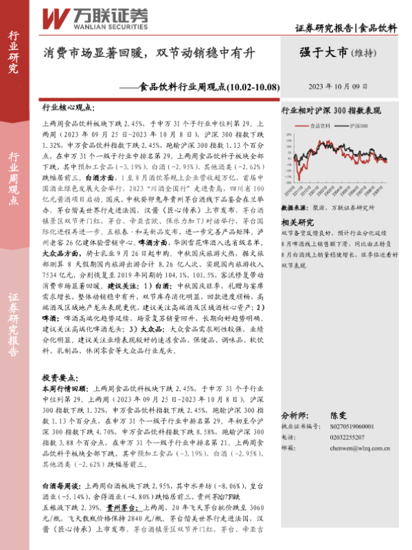 【万联证券】【20231009】20231009-万联证券-食品饮料行业周观点:消费市场显著回暖,双节动销稳中有升-12页