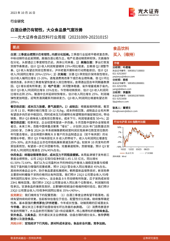 【光大证券】【20231016】20231016-光大证券-食品饮料行业周报:白酒业绩仍有韧性,大众食品景气度改善-10页