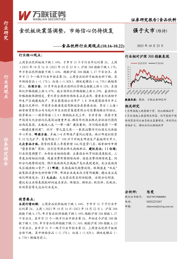 【万联证券】【20231023】20231023-万联证券-食品饮料行业周观点:食饮板块震荡调整,市场信心仍待恢复-13页